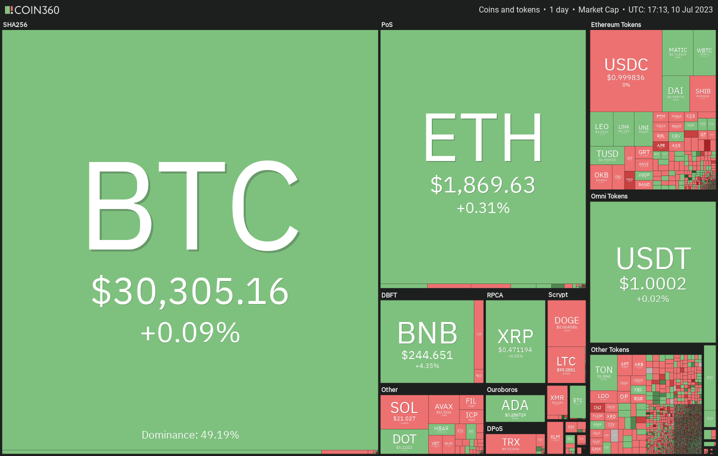 Tento príspevok bol pôvodne publikovaný na stránke https://cointelegraph.com/news/price-analysis-7-10-spx-dxy-btc-eth-bnb-xrp-ada-doge-sol-ltc a autorom článku je Cointelegraph By Rakesh Upadhyay. Tento článok je iba kópia originálneho článku.