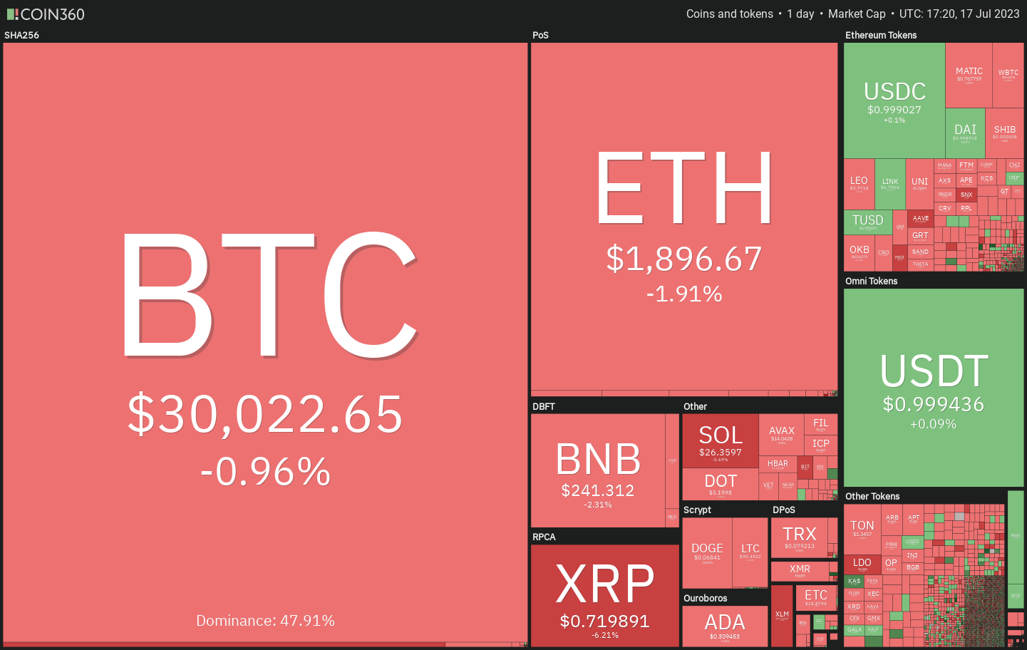 Tento príspevok bol pôvodne publikovaný na stránke https://cointelegraph.com/news/price-analysis-7-17-spx-dxy-btc-eth-xrp-bnb-sol-ada-doge-matic a autorom článku je Cointelegraph By Rakesh Upadhyay. Tento článok je iba kópia originálneho článku.