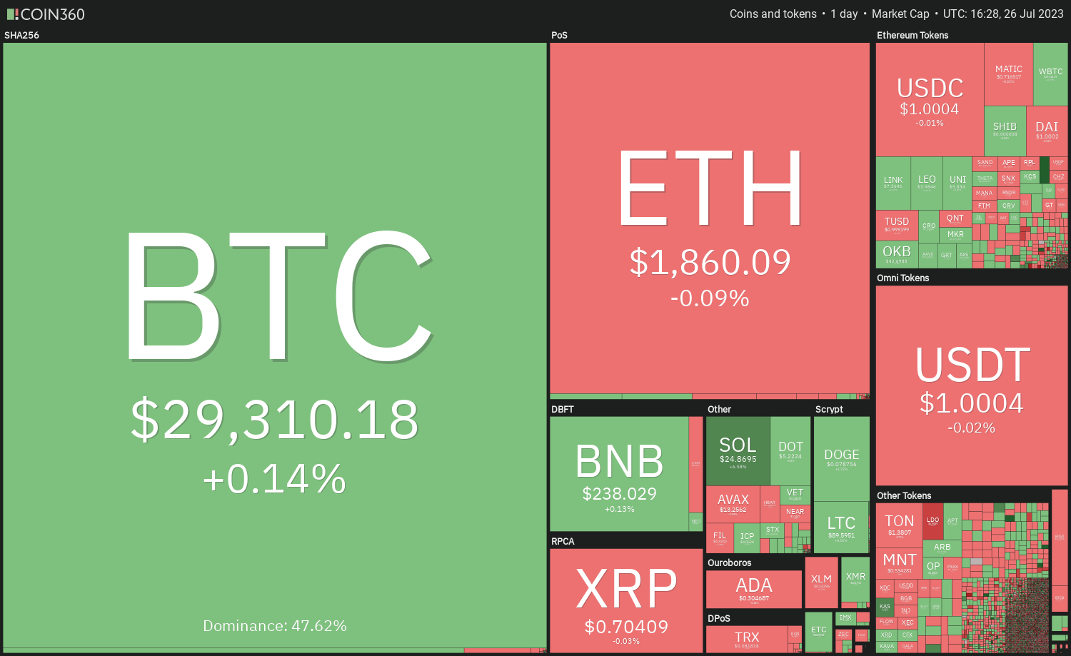 https://images.cointelegraph.com/cdn-cgi/image/format=auto,onerror=redirect,quality=90,width=840/https://s3.cointelegraph.com/uploads/2023-07/89519a5f-2d12-4a95-bd45-1d472270bbc8.jpgBitcoin and several major altcoins are trading inside a range, indicating that a strong catalyst is needed to start the next trending move.
