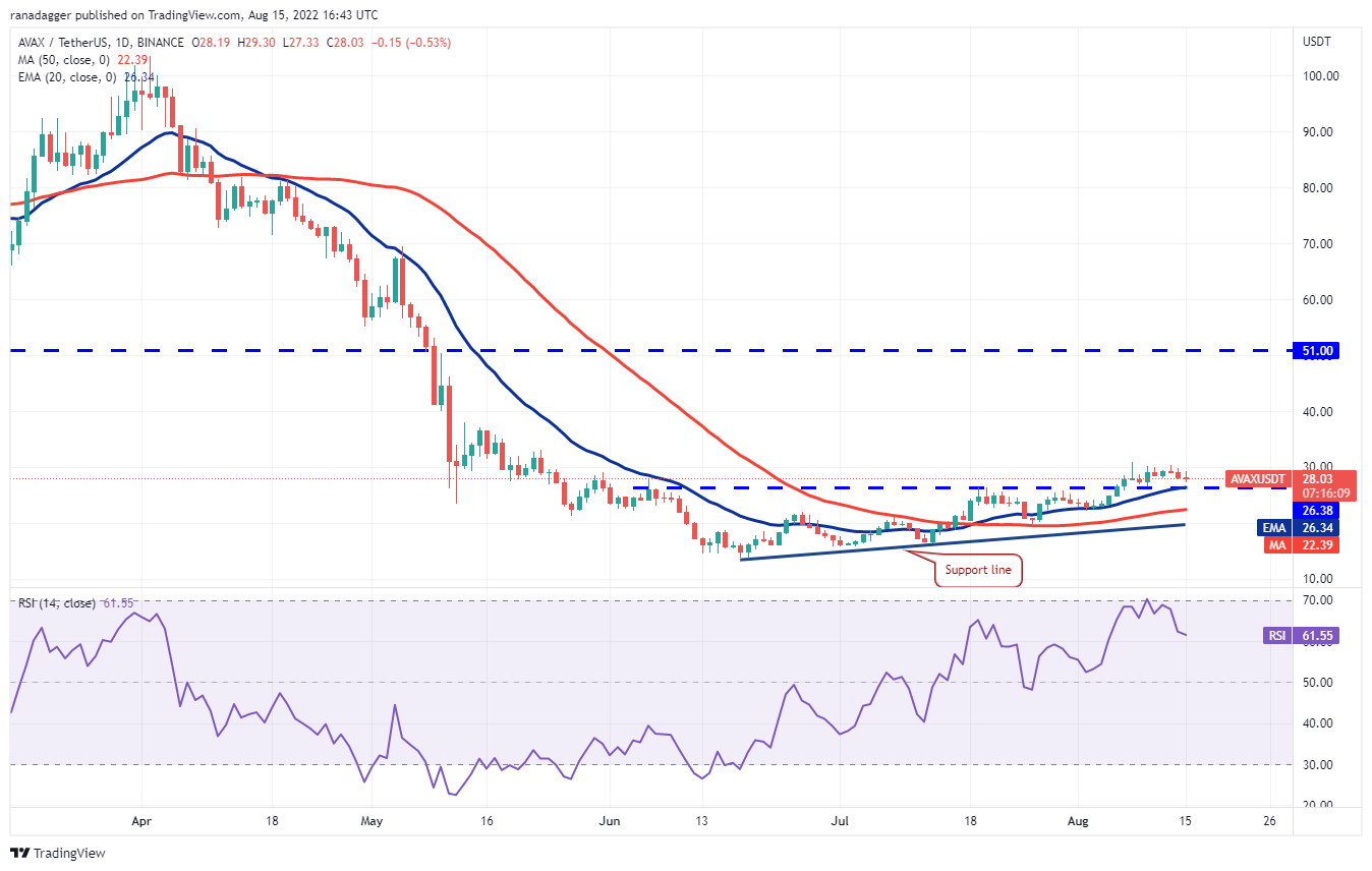 Buyers tried to push Avalanche (AVAX) above the overhead resistance on Aug. 13 but the bears stalled the attempt at $30.35. This suggests that bears are active at higher levels.