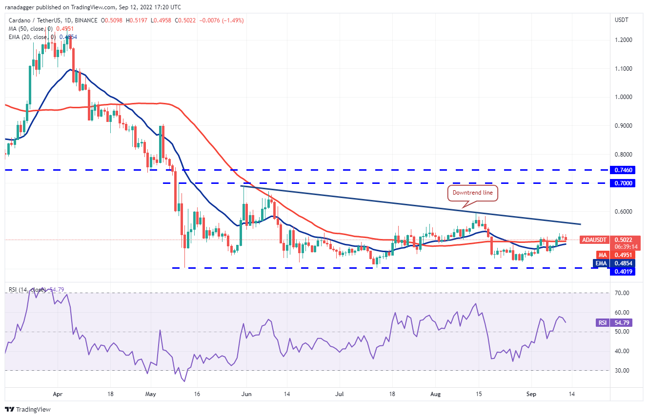 Cardano (ADA) climbed back above the 20-day EMA ($0.48) on Sept. 7 and the bulls extended the recovery by pushing the price above the 50-day SMA ($0.49) on Sept. 9.