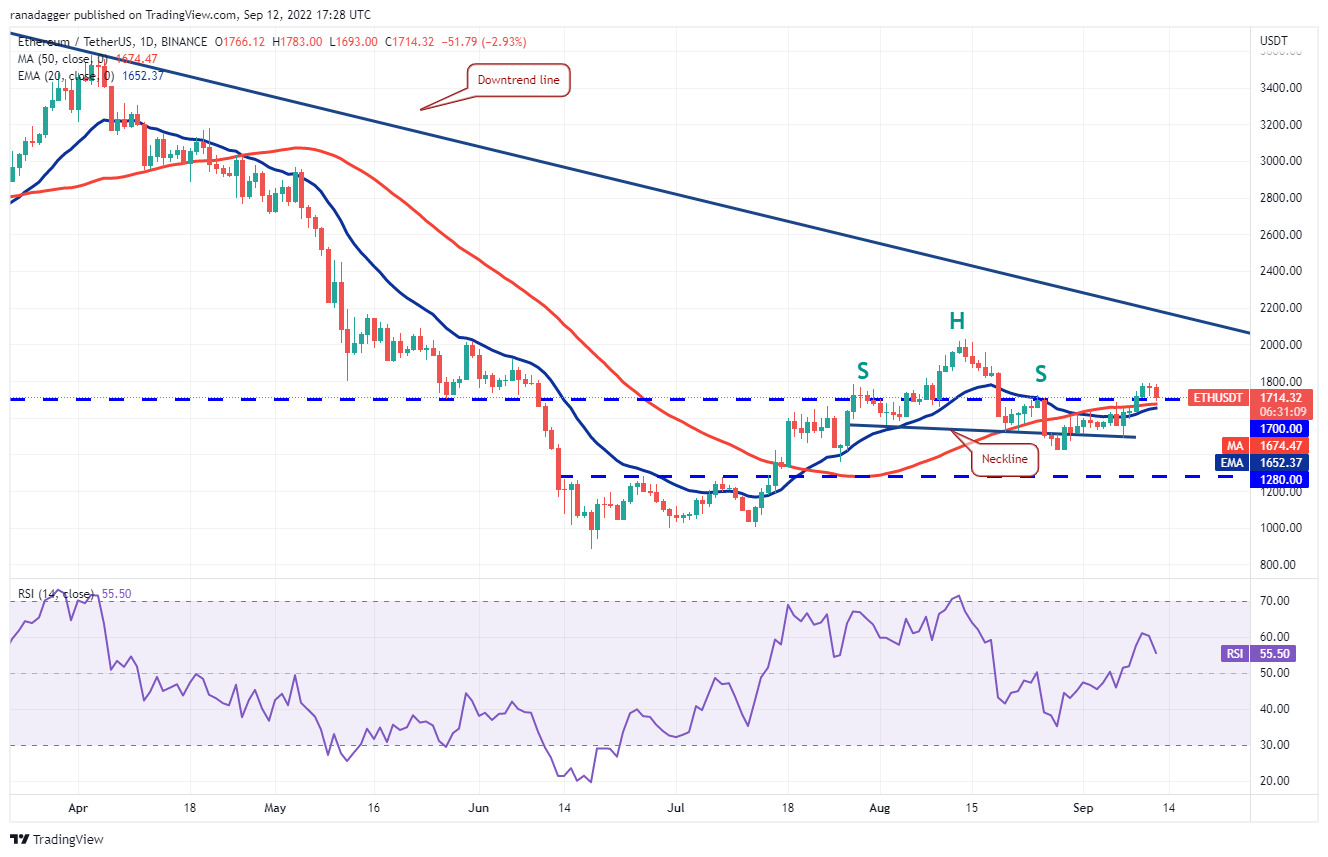 Ether (ETH) broke above the overhead resistance at $1,700 on Sept. 9 but the bulls are facing stiff resistance at $1,800. This indicates that bears have not given up and they continue to sell at higher levels.