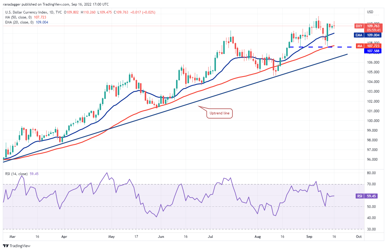 The DXY is in a strong uptrend. The bears tried to pull the price below the moving averages but the bulls vigorously defended the 50-day simple moving average (SMA(107) on Sept. 13.