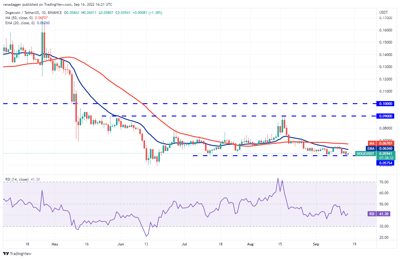 Dogecoin (DOGE) has continued its slide and is near the strong support of $0.06. The price rebounded off this level on Sept. 7; hence, it may again attract buyers.
