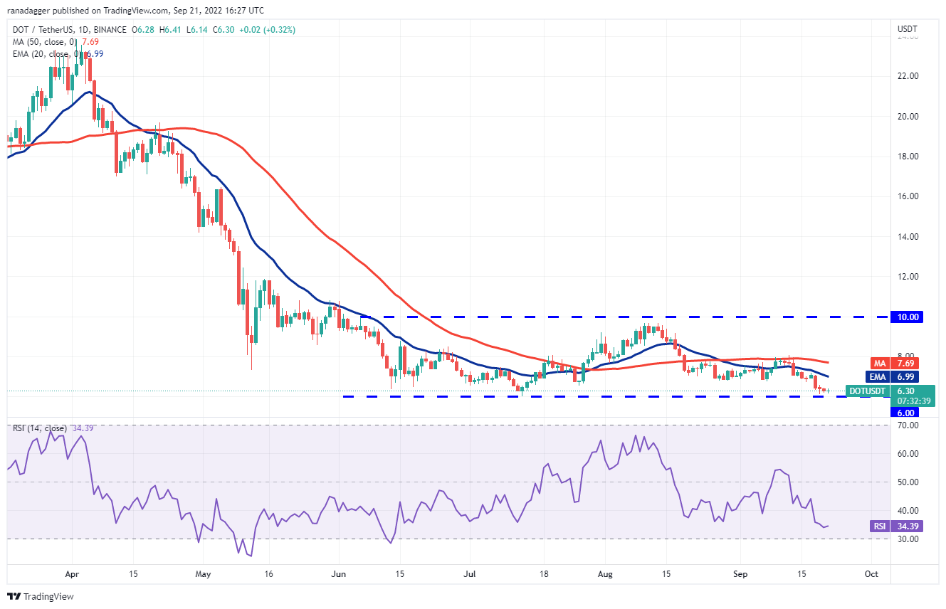 Buyers are expected to defend the $6 level with vigor because a break and close below it could signal the resumption of the downtrend. The DOT/USDT pair could then decline to the next major support at $4.