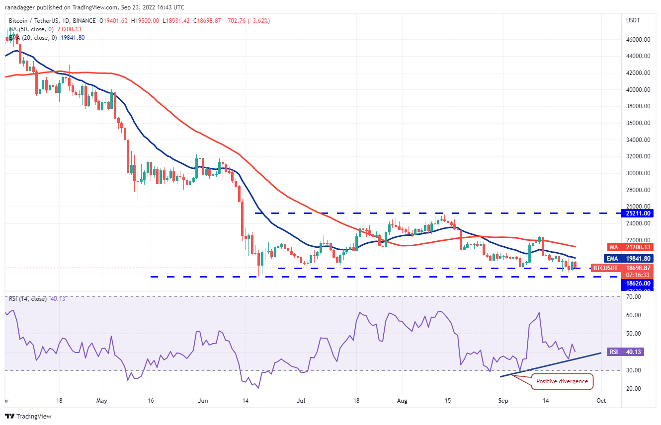 Buyers have been buying the dip below $18,626 in Bitcoin but the failure to push the price above the 20-day EMA ($19,841) shows that bears are in no mood to let go of their advantage. This increases the possibility of a retest of the vital June low at $17,622.