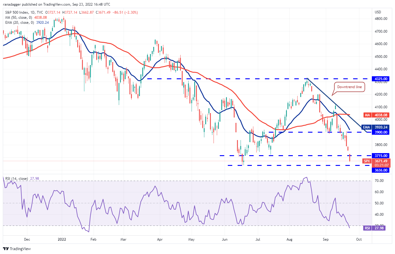 The S&P 500 index (SPX) broke below the 3,900 support on Sept. 16 and the bears successfully defended the level on retests on Sept. 17 and 21. Hence, this becomes an important level to keep an eye on as a break above 3,900 will be the first sign that bulls are on a comeback.