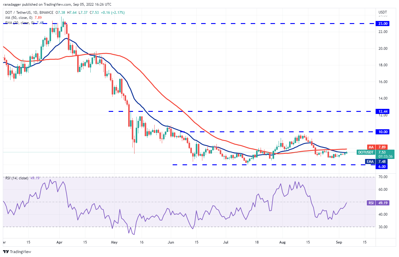 If they manage to do that, it will suggest that lower levels continue to attract buyers. The DOT/USDT pair could then attempt a rally to $9.17 and later to the overhead resistance at $10.