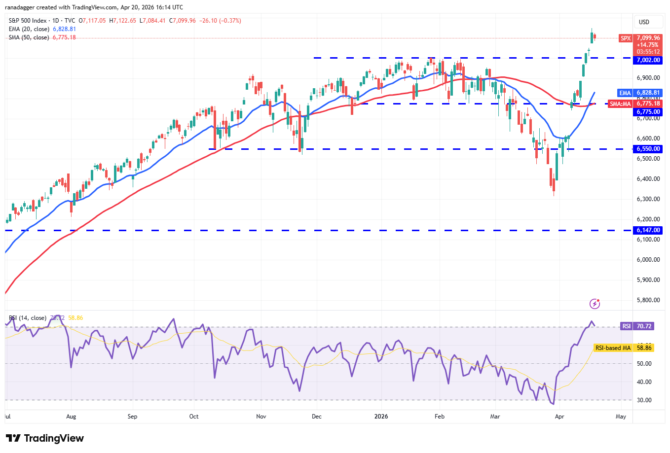 The S&P 500 Index (SPX) rallied sharply last week, rising to a new all-time high of 7,147 on Friday.