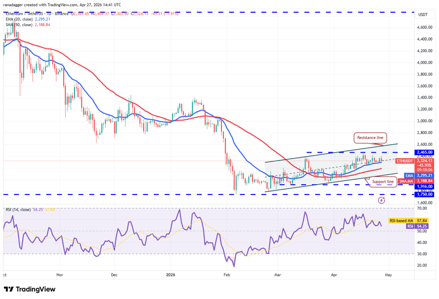 Ether (ETH) remains above the 20-day EMA ($2,295), but bulls have failed to push it above the $2,465 resistance.