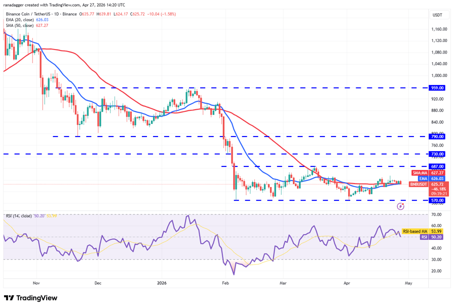 BNB (BNB) is finding support at the moving averages, but the bulls have failed to trigger a strong bounce off them.