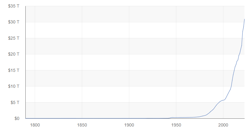 „Nikdy nesplatíme svoje účty… Máme dlh vo výške 31,7 bilióna dolárov. To je 31,7 bilióna dolárov, ktoré sme nezaplatili. Peniaze sme si požičali. A peniaze si chceme požičiavať aj naďalej. Nikto nechce platiť žiadny z týchto dlhov.”