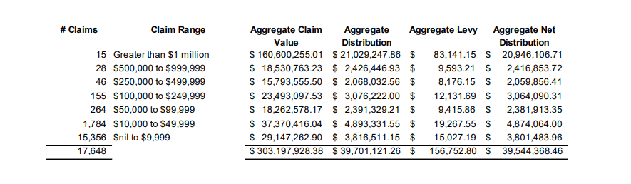 According to EY, 15,356 creditors are owed between $0 to $10,000, while 1,784 are owed between $10,000 and $49,999.
