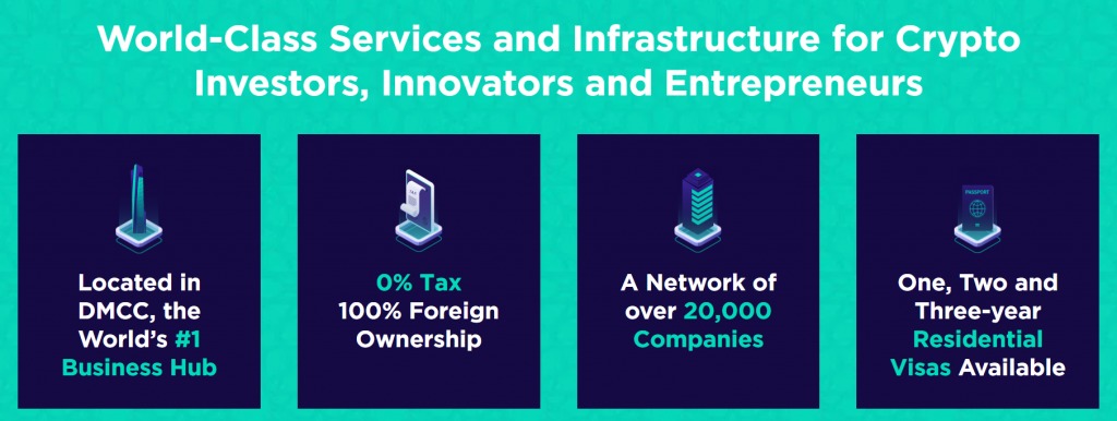 The DMCC, or Dubai Multi Commodities Centre, is a free zone. This means that it exists under special legislation, with companies incorporated there enjoying unique regulations and special treatment, including 0% corporate tax. With crypto as its newest field, the DMCC has a long history as a global hotspot for companies trading gold, coffee and diamonds between the East and the West.