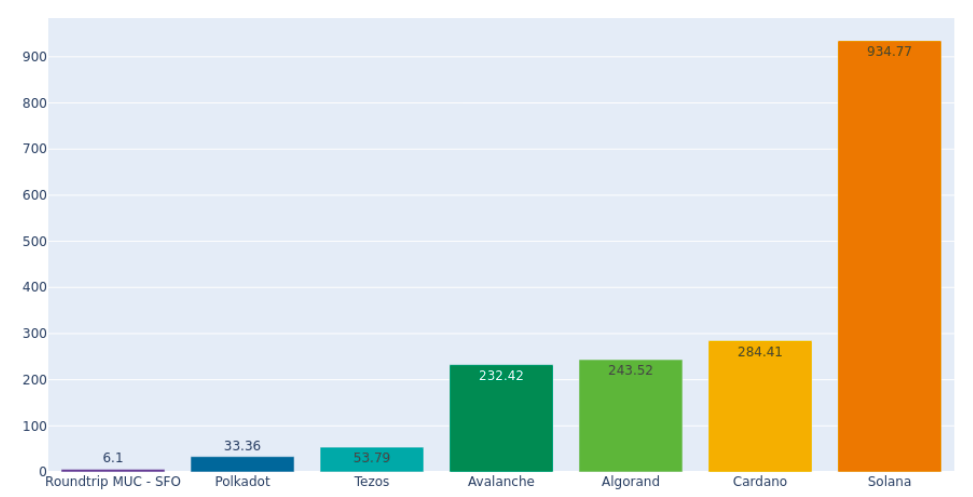 According to the CCRI’s findings, the Solana blockchain consumed 0.166 watt-hours (Wh) of electricity per transaction within the study, becoming the most energy-efficient PoS protocol in terms of energy used per transaction among the six analyzed networks.