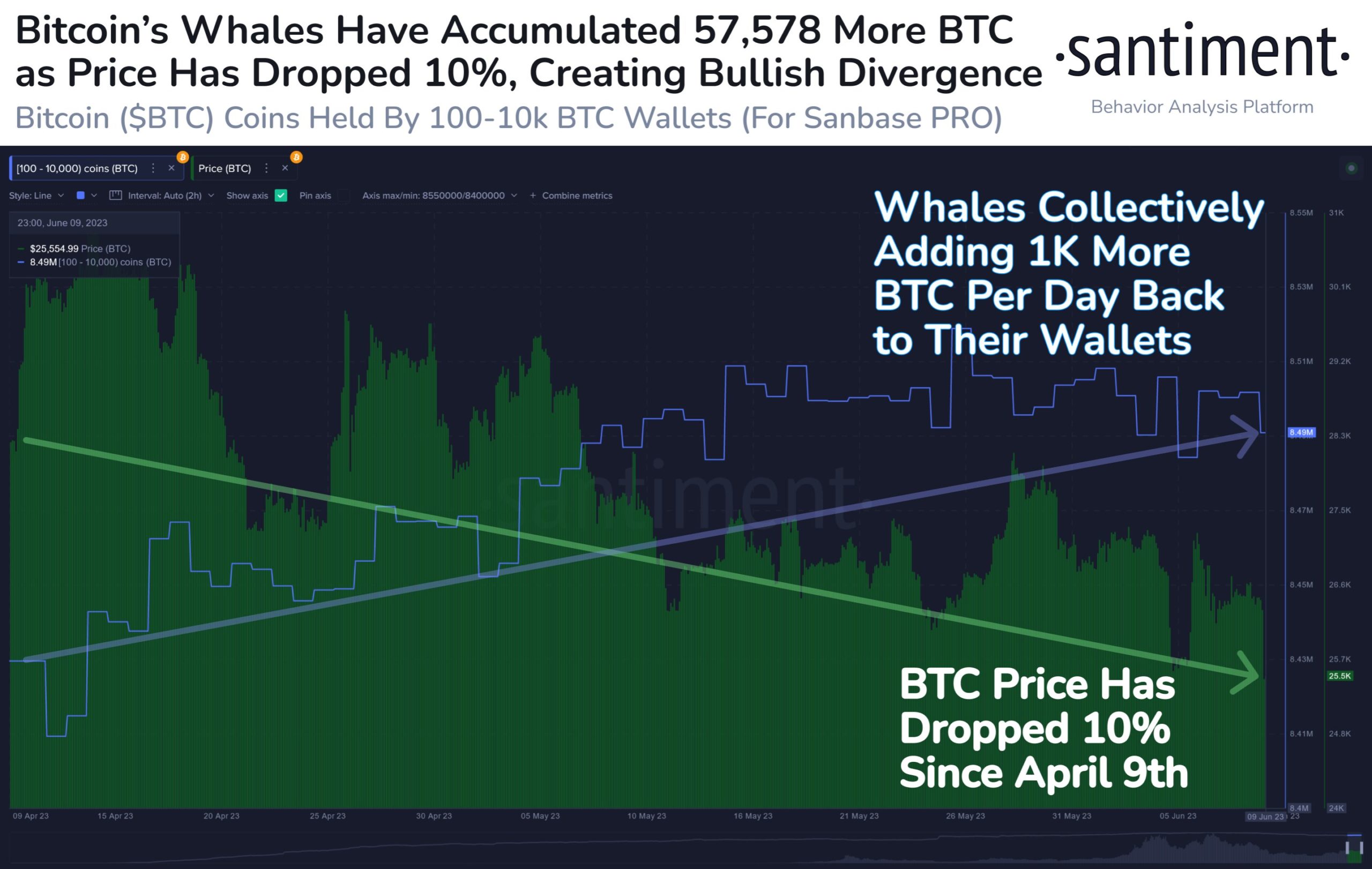 “With whale holdings moving up by ~1K $BTC per day while prices fall, there is reason to believe a strong rebound can occur.”