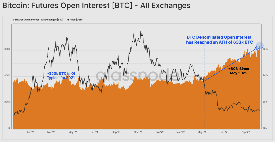 Crypto derivatives markets are also flashing multiple signals. Bitcoin futures open interest has reached an all-time high of 633,000 contracts, while trading volumes have plummeted to a multi-year low of $24 billion daily. Glassnode notes that these levels were “last seen in December 2020, before the bull cycle had broken through the 2017 cycle $20K ATH.”