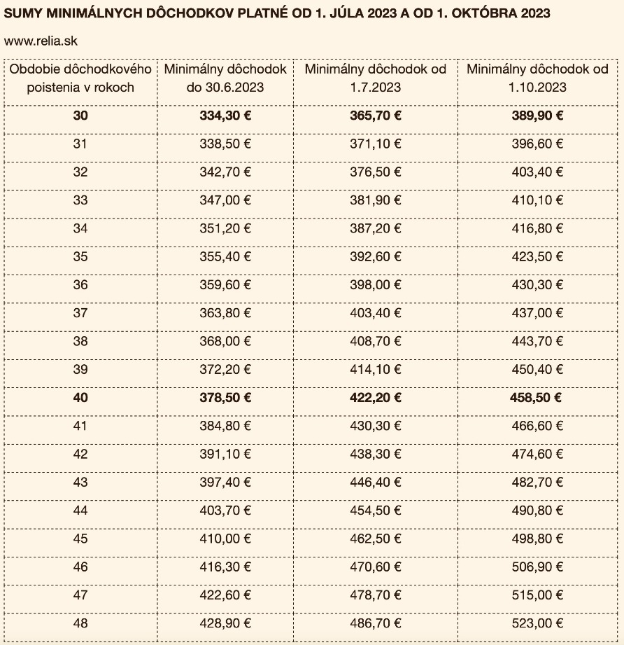 - Za 30 rokov – 145 % sumy životného minima platného k 1. januáru príslušného roka