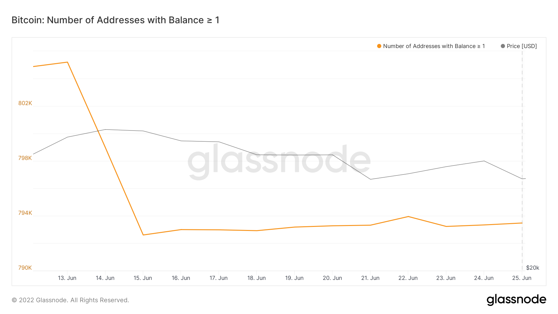 Between June 15 to June 25, the total number of Bitcoin wallet addresses holding more than 1 BTC grew by 873, according to Glassnode data.
