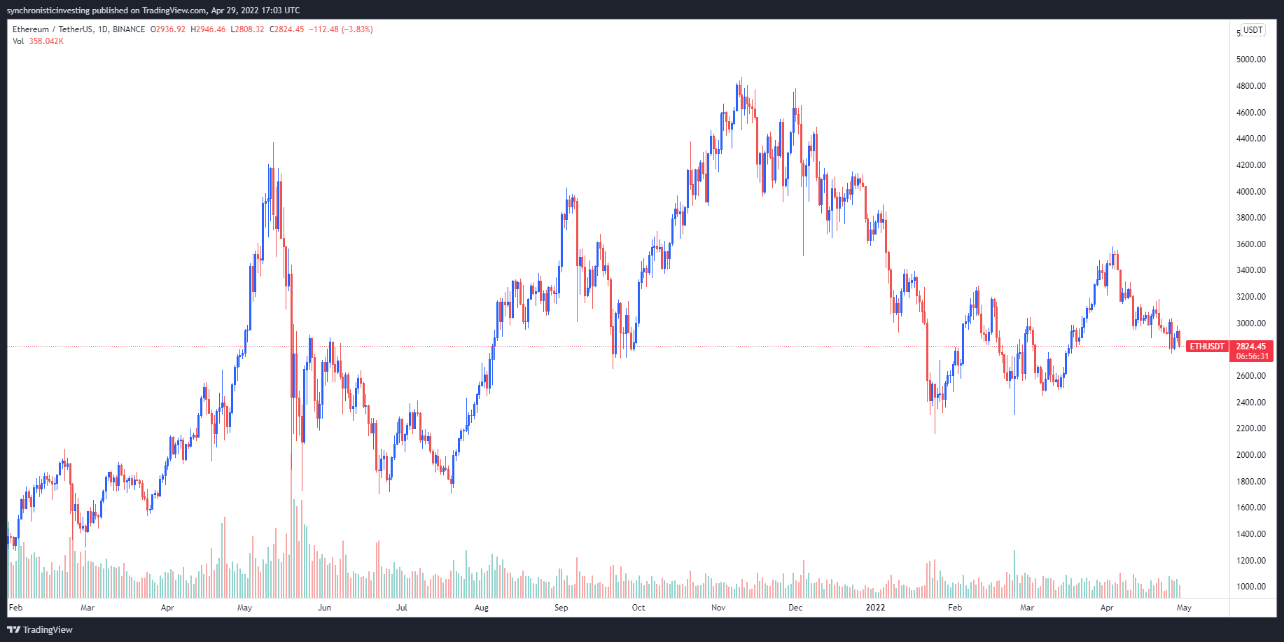 One of the main questions this chart elicits is what will it take for Ether to break free from “the invisible chain” that has kept it tethered to Bitcoin for so long.