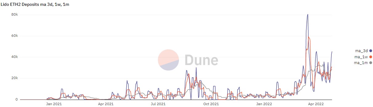 Even with Ether price continuing to decline, data shows that the number of ETH staked on the beacon chain continues to increase. Data from Dune Analytics also shows increasing deposits to Eth2 and multiple analysts have shared their view on how institutional investors and whales might trade Ether in the pre and post Merge phase.