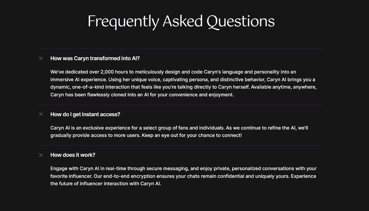 Dubbed CarynAI, the project was built by Forever Voices, which utilizes more than 2,000 hours worth of audio from Marjorie’s deleted YouTube videos to create the virtual girlfriend. It comes in a text and audio-based format, with the AI closely replicating her actual voice and speaking patterns.
