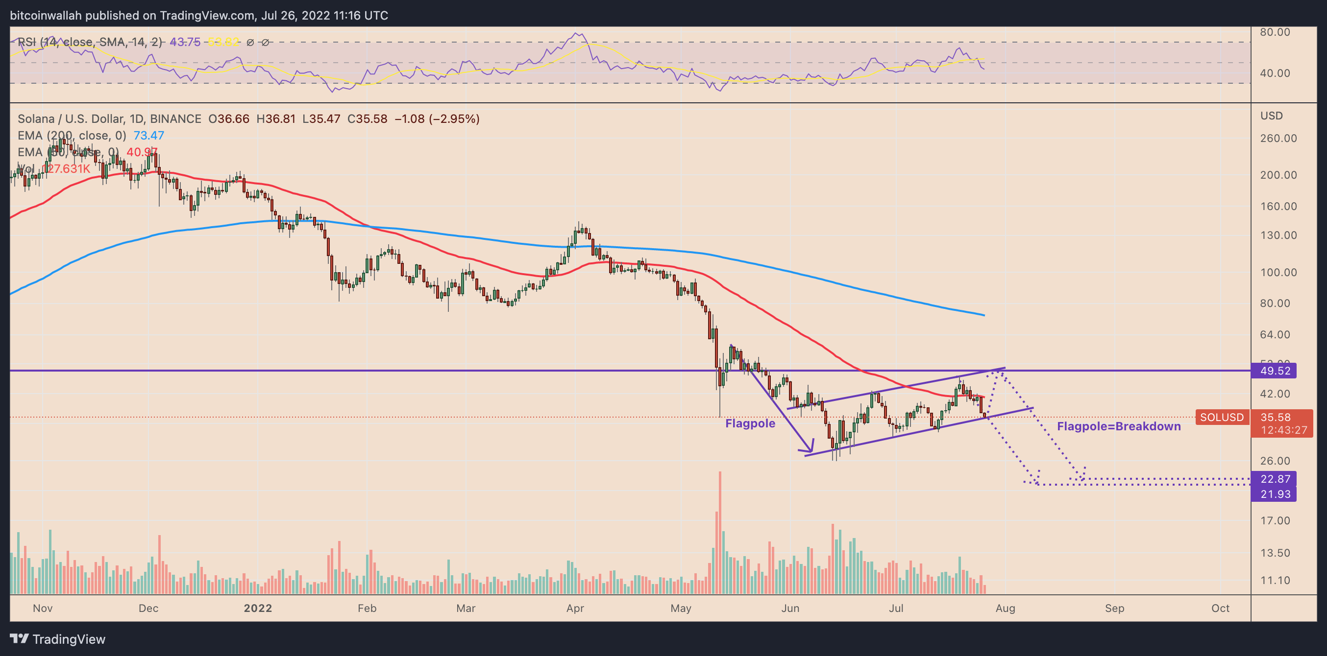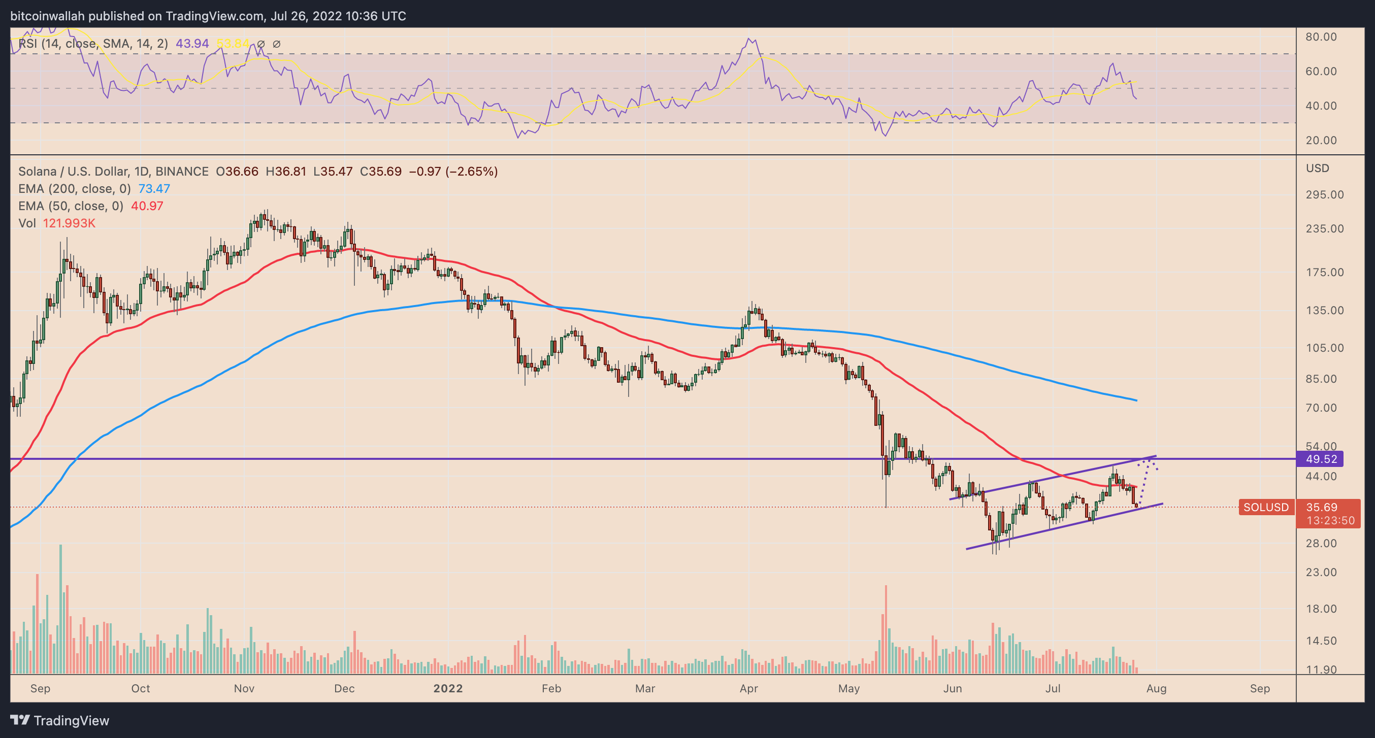 https://images.cointelegraph.com/images/840_aHR0cHM6Ly9zMy5jb2ludGVsZWdyYXBoLmNvbS91cGxvYWRzLzIwMjItMDcvYjY1MjZjMzMtZjM0ZS00OTdhLWFhZjUtZGZjZDBiY2RlNDQ2LmpwZw==.jpgSolana (SOL) dipped to a two-week low at around $35.50 on July 26, mirroring downside moves elsewhere in the crypto market. Nonetheless, technicals suggests that Solana’s price flirts with the prospects of rising 40% in August.