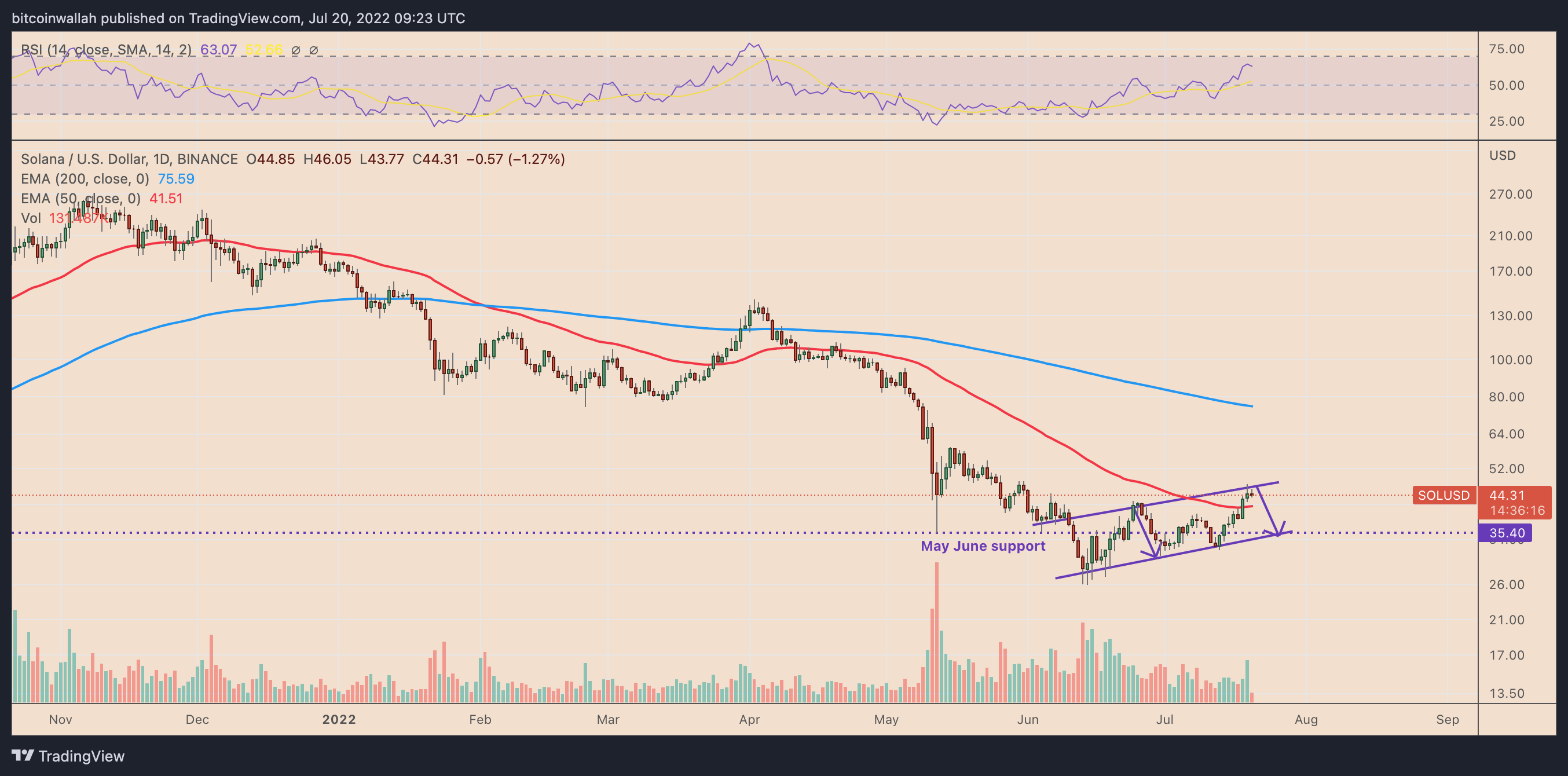 https://images.cointelegraph.com/images/840_aHR0cHM6Ly9zMy5jb2ludGVsZWdyYXBoLmNvbS91cGxvYWRzLzIwMjItMDcvZGFiYTA0ZDctNmRlYS00MzcxLWIyMWItOGY1NzUxMDBhOTU0LmpwZw==.jpgSolana (SOL) ticked modestly lower on July 20 after testing a critical technical resistance, suggesting further pullback moves in the coming weeks.