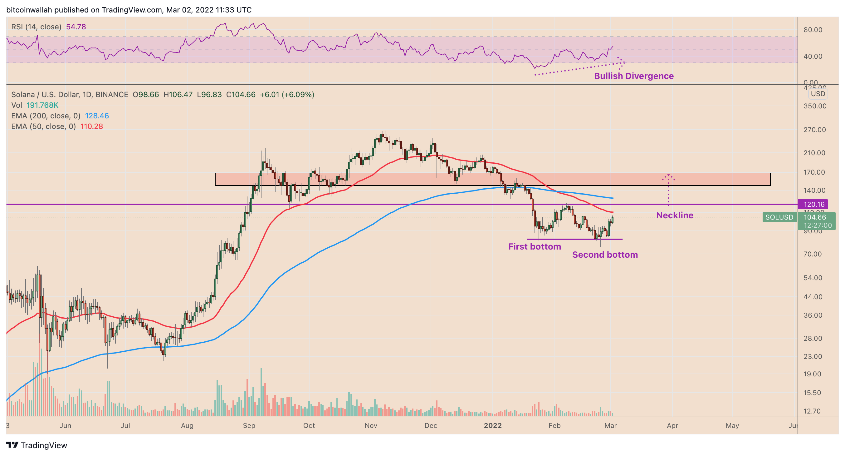 https://images.cointelegraph.com/images/840_aHR0cHM6Ly9zMy5jb2ludGVsZWdyYXBoLmNvbS91cGxvYWRzLzIwMjItMDMvNTQ0Y2JjNjMtOWI2Ny00MmVkLThhODItNWMxODYyZGRkYjNhLmpwZw==.jpgThe price of Solana (SOL) may rise by over 45% in the coming weeks as the cryptocurrency intends to complete a double-bottom chart pattern against the U.S. dollar.