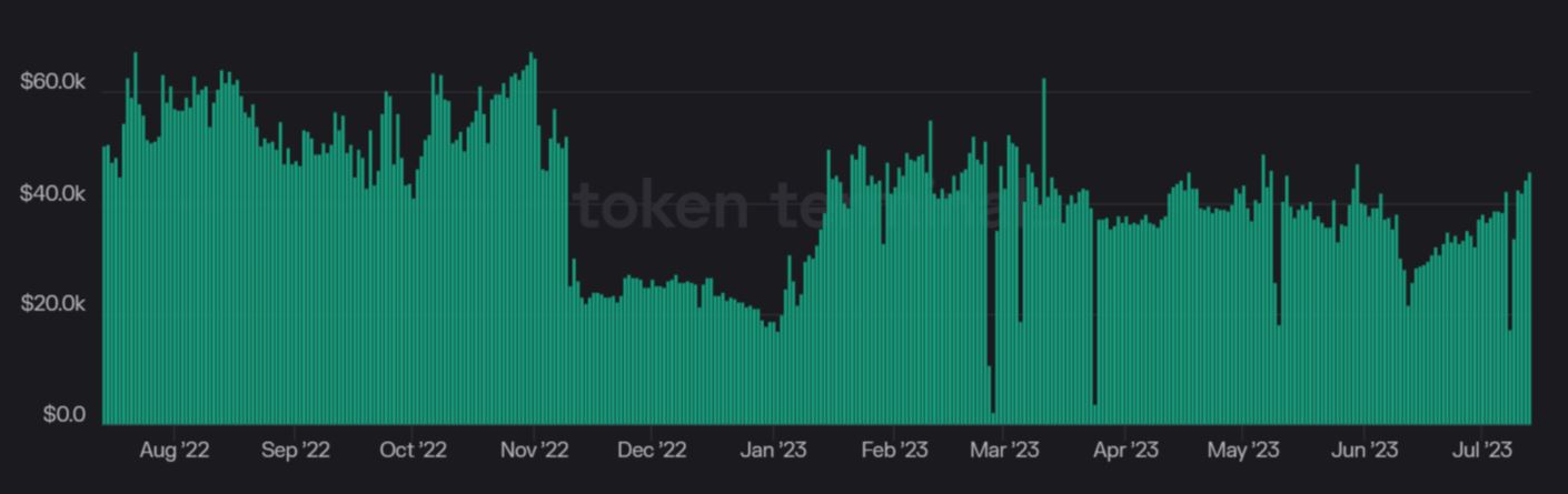 Its trading volumes witnessed a small spike in June, however, has fallen toward yearly low levels in July, suggesting that not much has changed since FTX’s collapse.