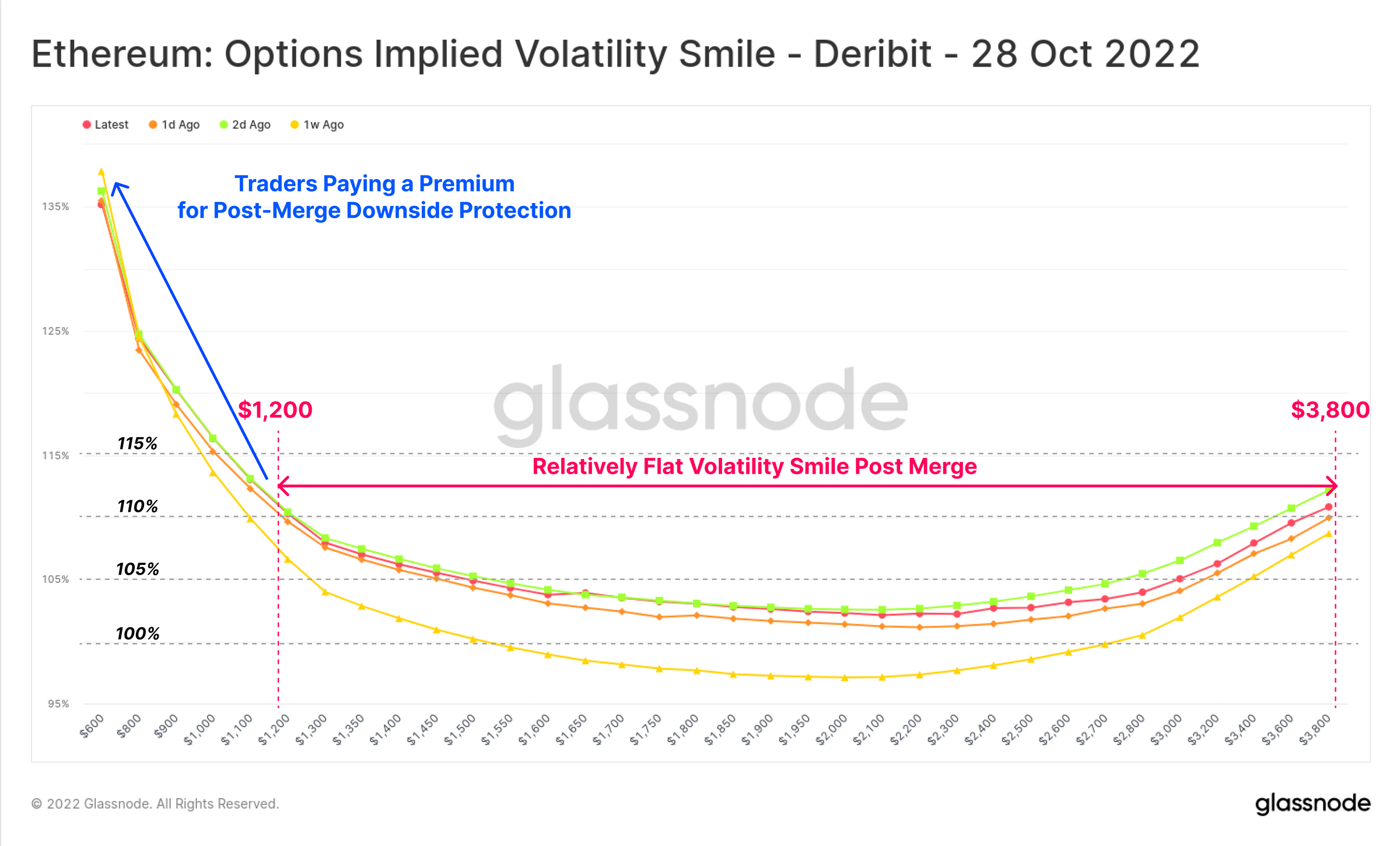 There appears to be demand for downside protection among traders after the Merge, indicated by a so-called “options implied volatility smile” metric (OIVS).