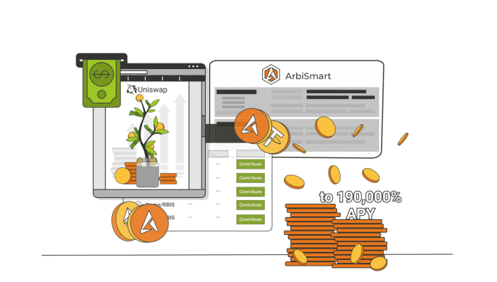 Program bude ponúkaný prostredníctvom Uniswapu a účastníci budú môcť prispievať do poolov likvidity ETH/RBIS a/alebo USDT/RBIS, pričom k službe budú pristupovať priamo prostredníctvom platformy ArbiSmart a získavať až 190,000% APY, ako aj 0,3% z poplatkov za každý obchod.