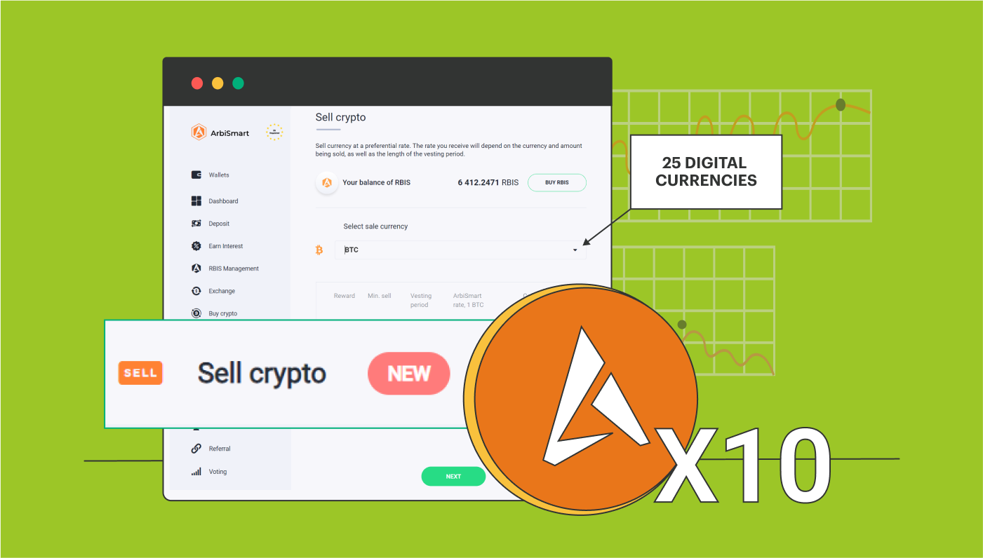 Bez ohľadu na to, či je trh v útlme alebo v raste, pri každom predaji kryptomeny prostredníctvom burzy ArbiSmart dostanete trojnásobok trhovej hodnoty na ktorejkoľvek z 25 rôznych podporovaných digitálnych mien projektu, okrem RBIS, na ktorej dostanete desaťnásobok trhovej hodnoty.