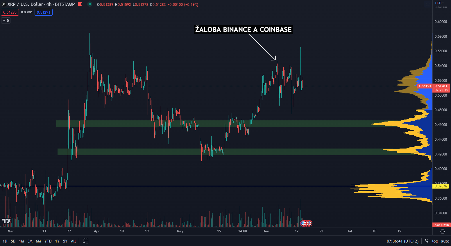 Práve zverejnenie dokumentov z prejavu spôsobilo na cene XRP dočasnú cenovú volatilitu a zvýšený objem obchodovania. Rast ceny ale zastavila rezistencia, ktorá je prítomná na grafe už celý rok. Cenová hladina, na ktorej sa XRP v súčasnosti nachádza je ale významná oveľa dlhšie. Cena na ňu totiž reagovala či už ako na support alebo rezistenciu od roku 2018.