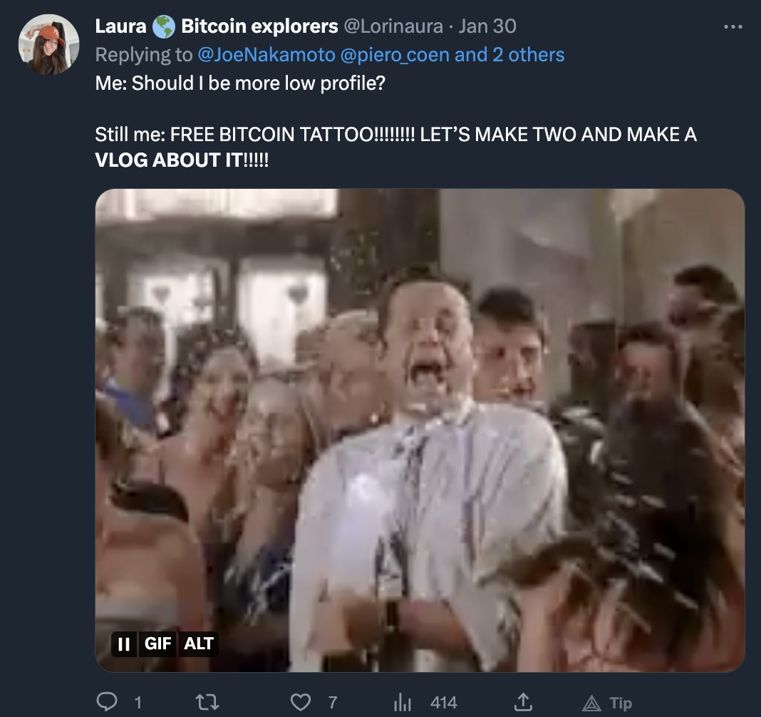 — Laura Bitcoin explorers (@Lorinaura) January 30, 2023