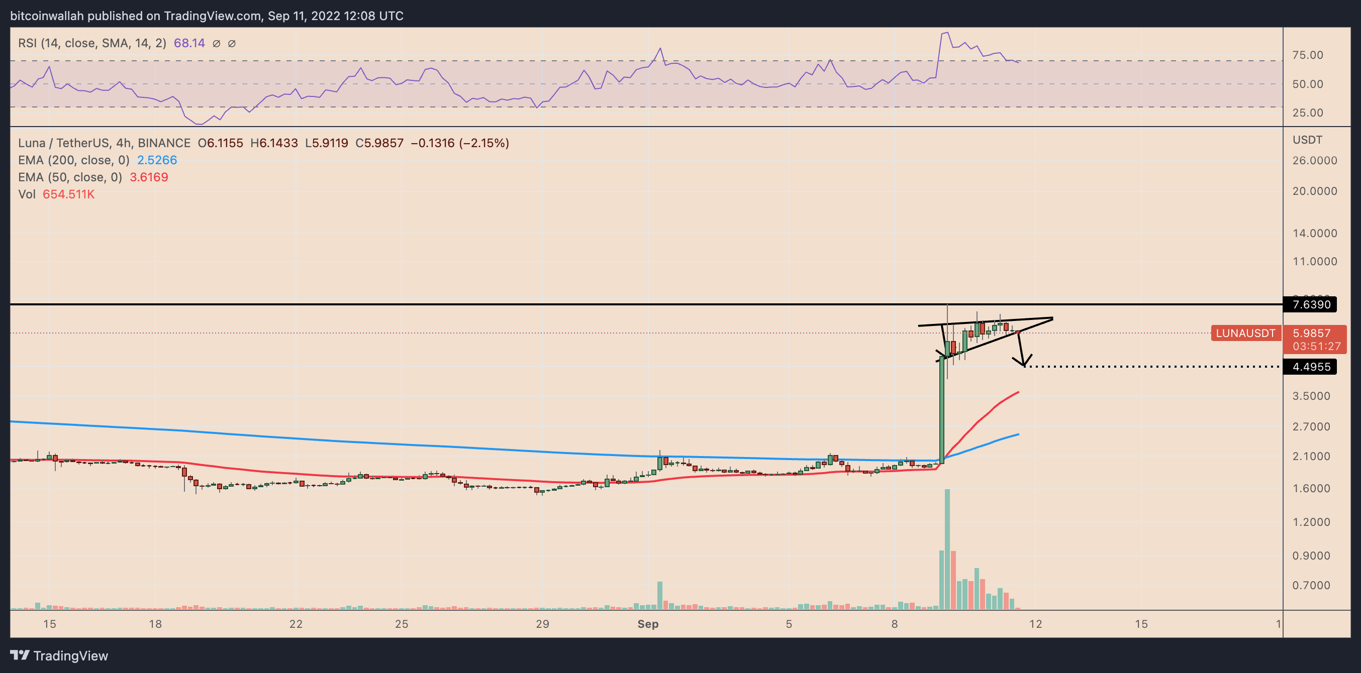 From a technical perspective, LUNA’s price risks undergoing a massive correction in the coming days.