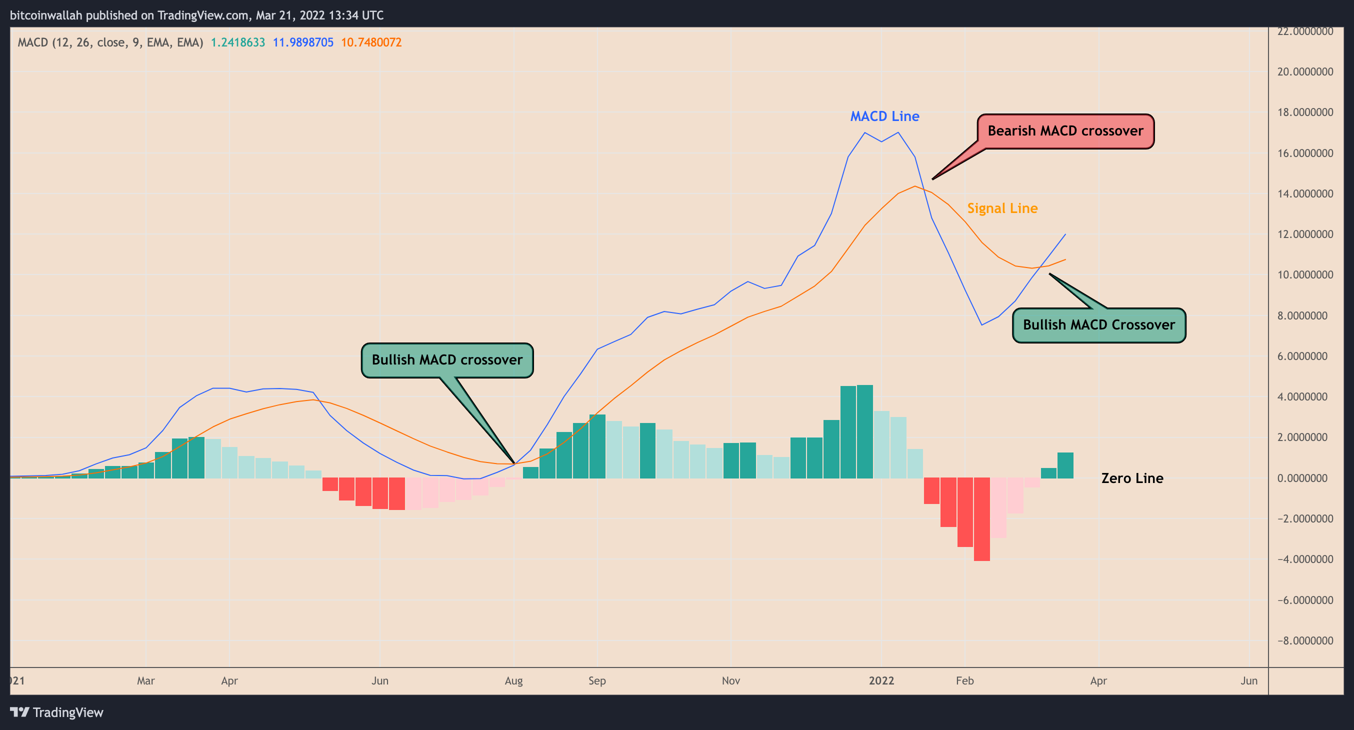 So, if the MACD line crosses above the signal line, markets interpret it as a bullish MACD crossover. Conversely, a bearish MACD crossover occurs when the MACD line falls below the signal line.
