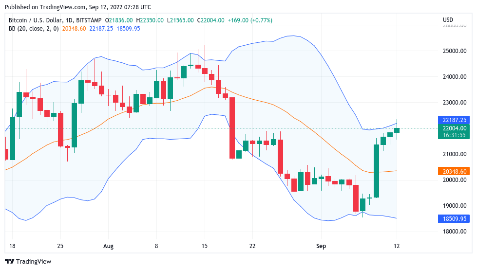“Bitcoin has climbed back above $22k today for the first time in over 3 weeks,” it summarized.