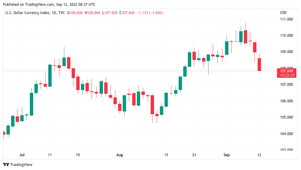 The U.S. dollar index (DXY), fresh from twenty-year highs, has fallen nearly 2.7% in just four days.