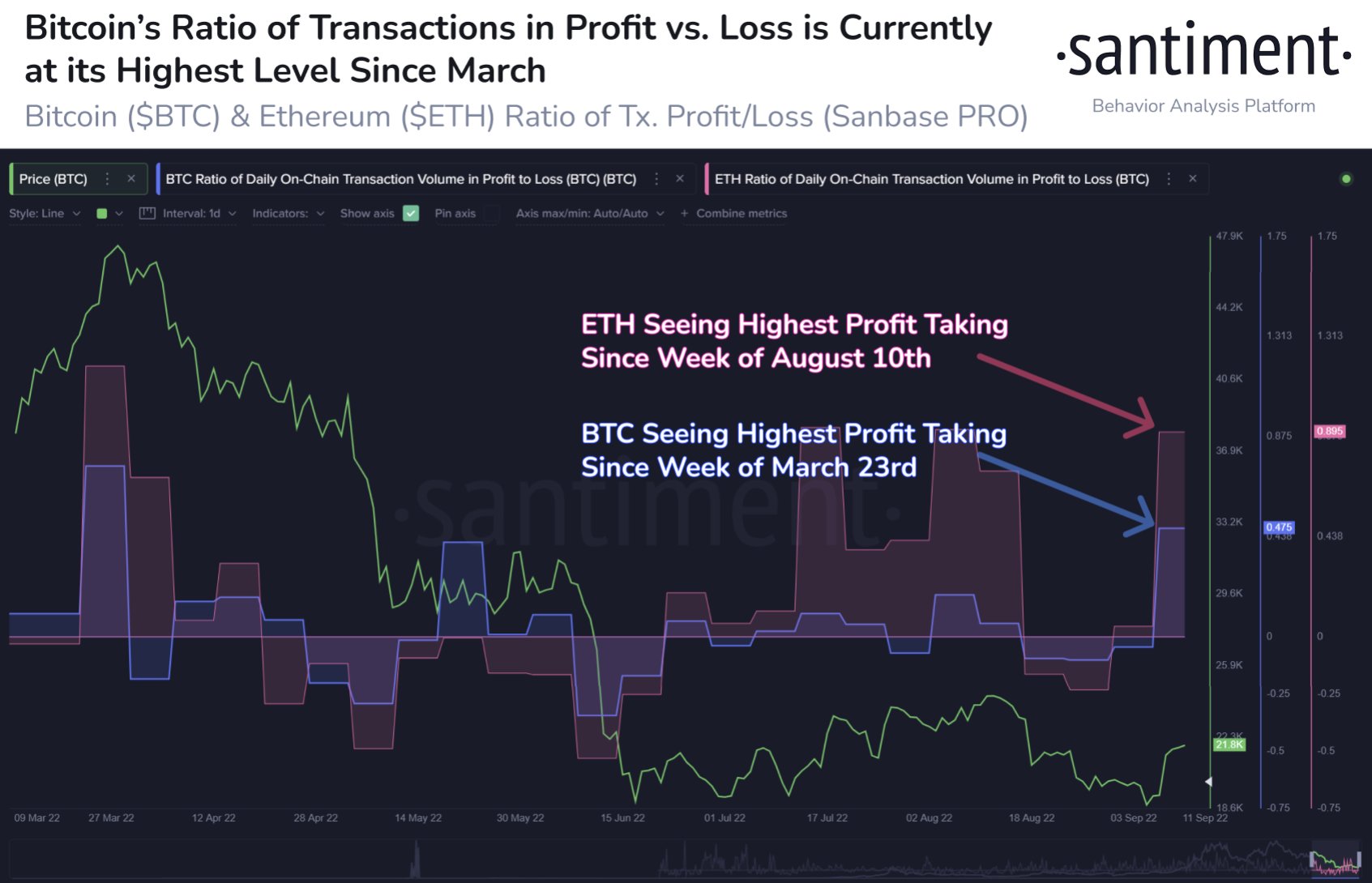 “$BTC’s ratio of transactions in profit vs. loss is at its highest since March, and it appears that many have viewed this mild bounce as the trigger to trade again.”
