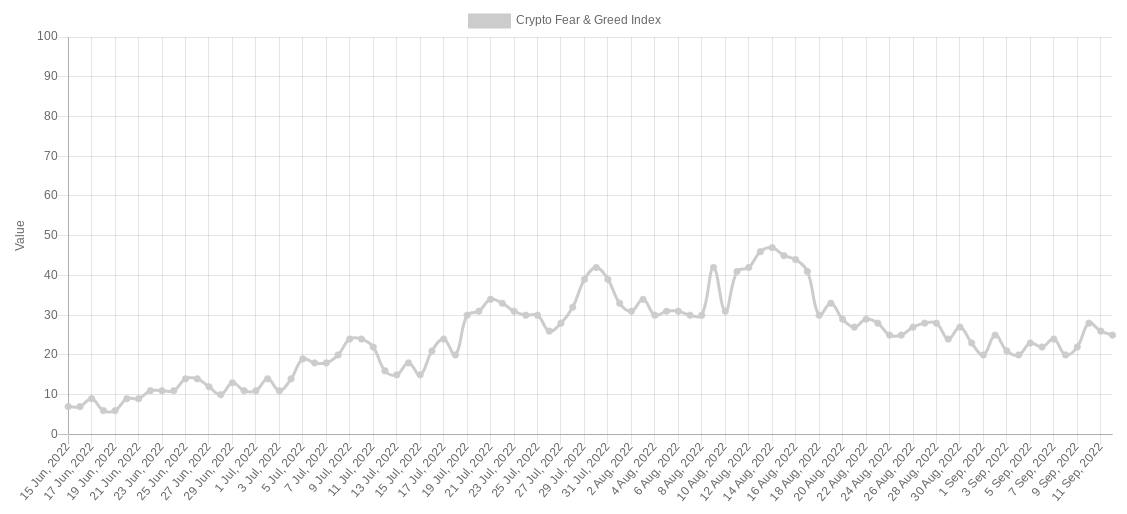 The Crypto Fear & Greed Index, after a brief escape higher, is back in “extreme fear” as of Sep. 12 in a sign that a definitive change of trend has yet to enter.