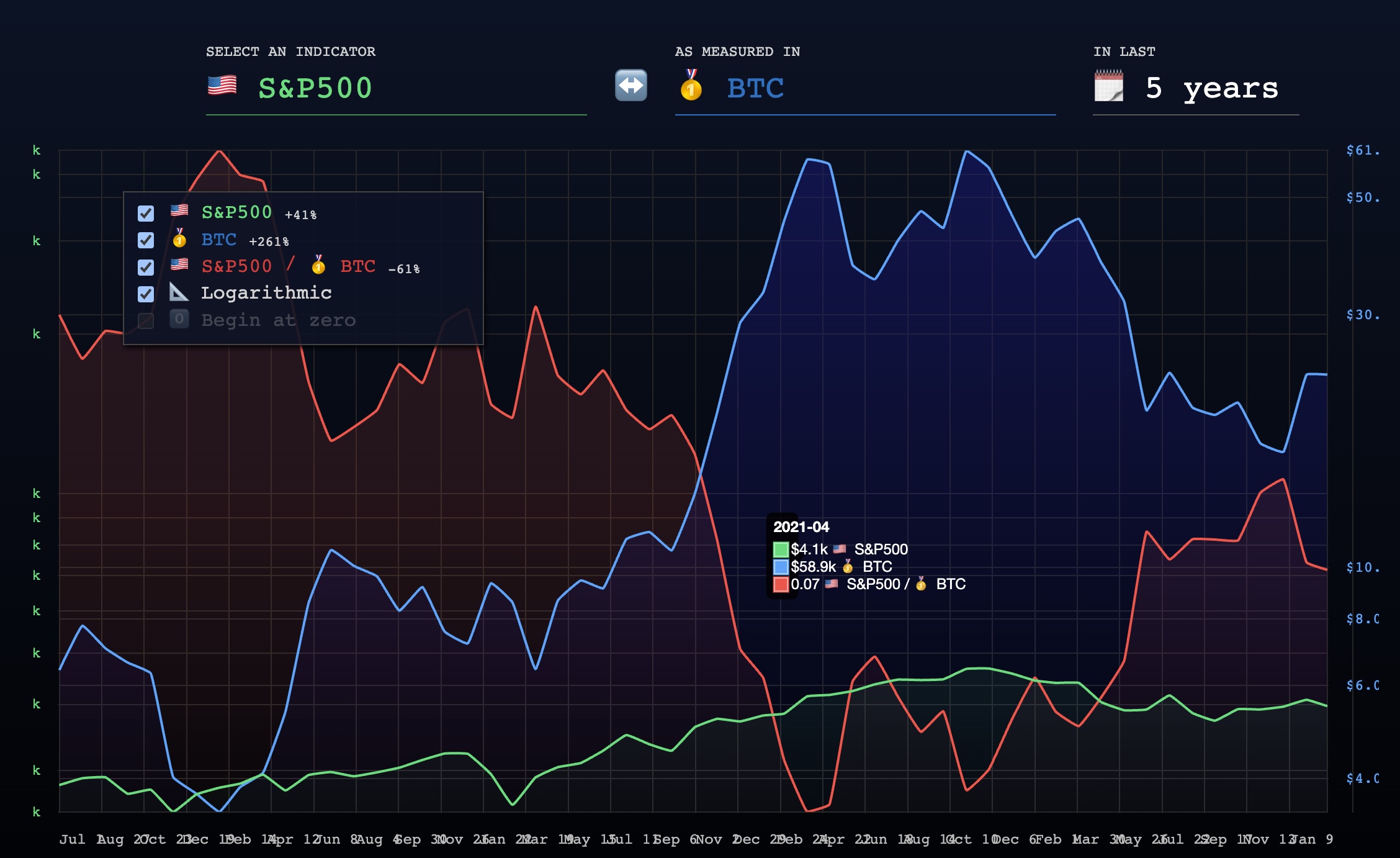 Meanwhile, the S&P 500 has steadily lost ground against the price of Bitcoin (BTC). Several boom-bust cycles in crypto did not change the general trend. Over the longer term, BTC served as a protection against both inflation and the underperformance of the S&P 500.