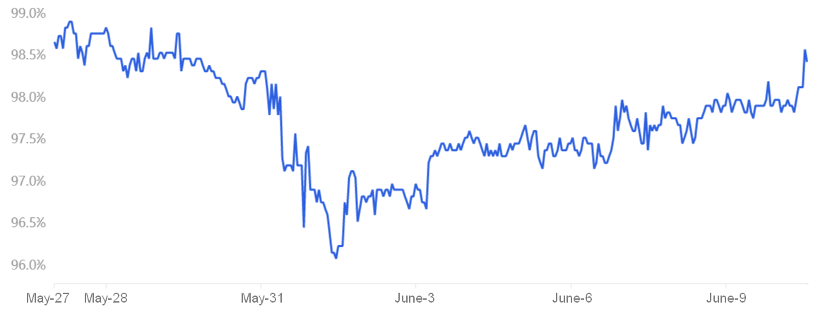 On May 31, the Tether price in Asian peer-to-peer markets entered a 4% discount, signaling intense retail selling pressure. Curiously, the situation improved on June 10 after the indicator moved to a 1.5% discount. Despite remaining negative, the metric shows investors’ willingness to buy the dip as the total crypto capitalization dropped below $1.2 trillion.