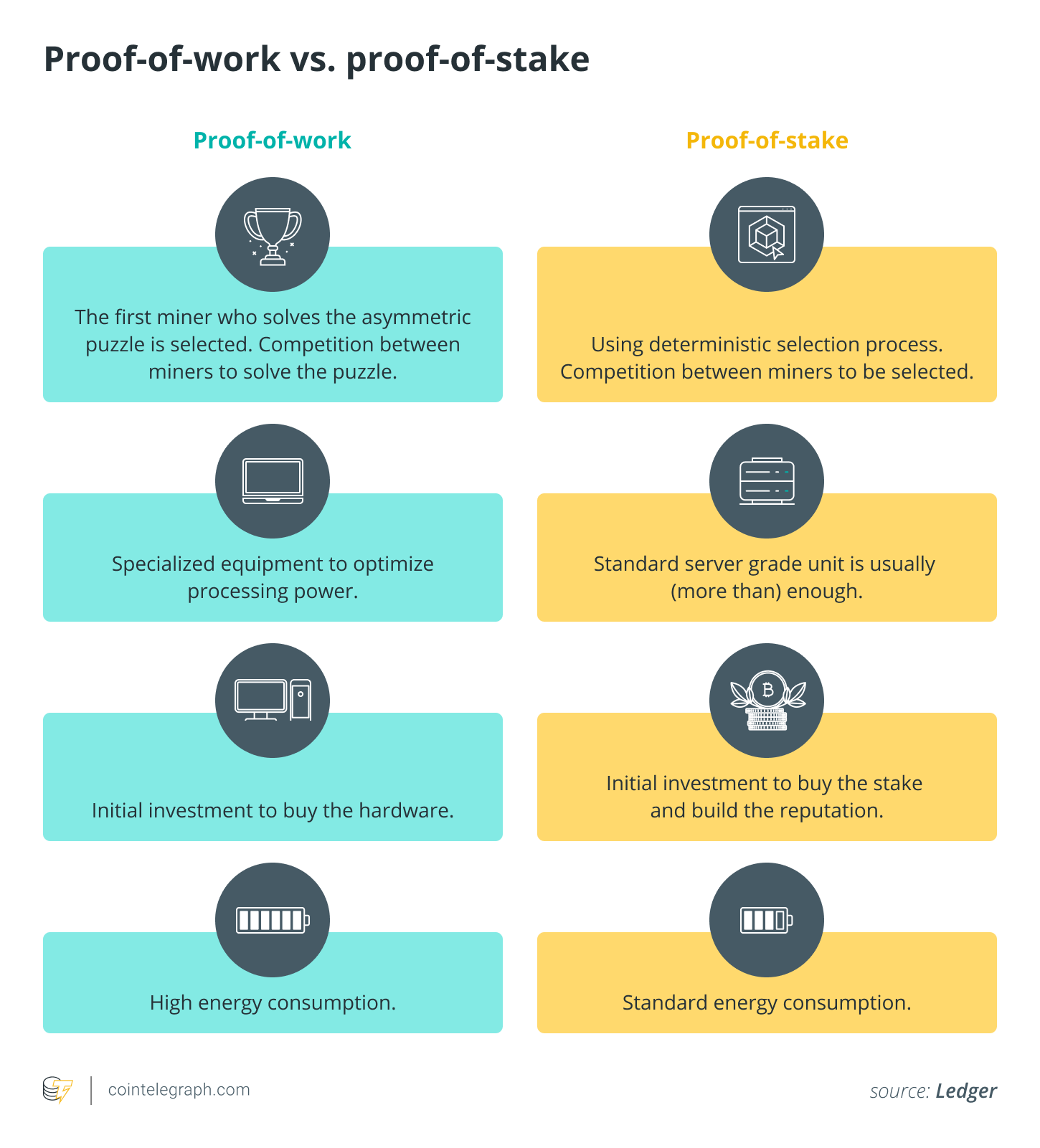 https://images.cointelegraph.com/images/840_aHR0cHM6Ly9zMy5jb2ludGVsZWdyYXBoLmNvbS91cGxvYWRzLzIwMjItMDUvMjU2OWVkOWYtYWQ1ZS00ZWI4LWJmZjgtOWZhYzllNzFmM2RjLmpwZw==.jpgBlockchains have relied on proof-of-work (PoW) validation since their inception. Yet the PoW consensus proved to be unsustainable with its high energy usage and its need for fast, powerful hardware creating high barriers to entry. That’s why blockchains are adopting proof-of-stake consensus algorithms (PoS), where those wanting to earn rewards don’t have to compete against other miners, but can simply stake part of their crypto for a chance to be chosen to be a validator — and reap the returns.