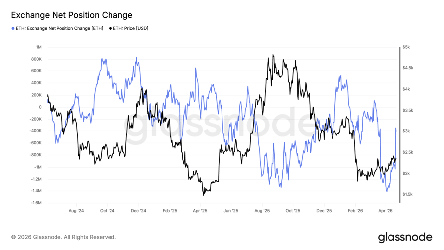 The net position change is at -351,300 ETH (30 days) at the time of writing on Thursday.