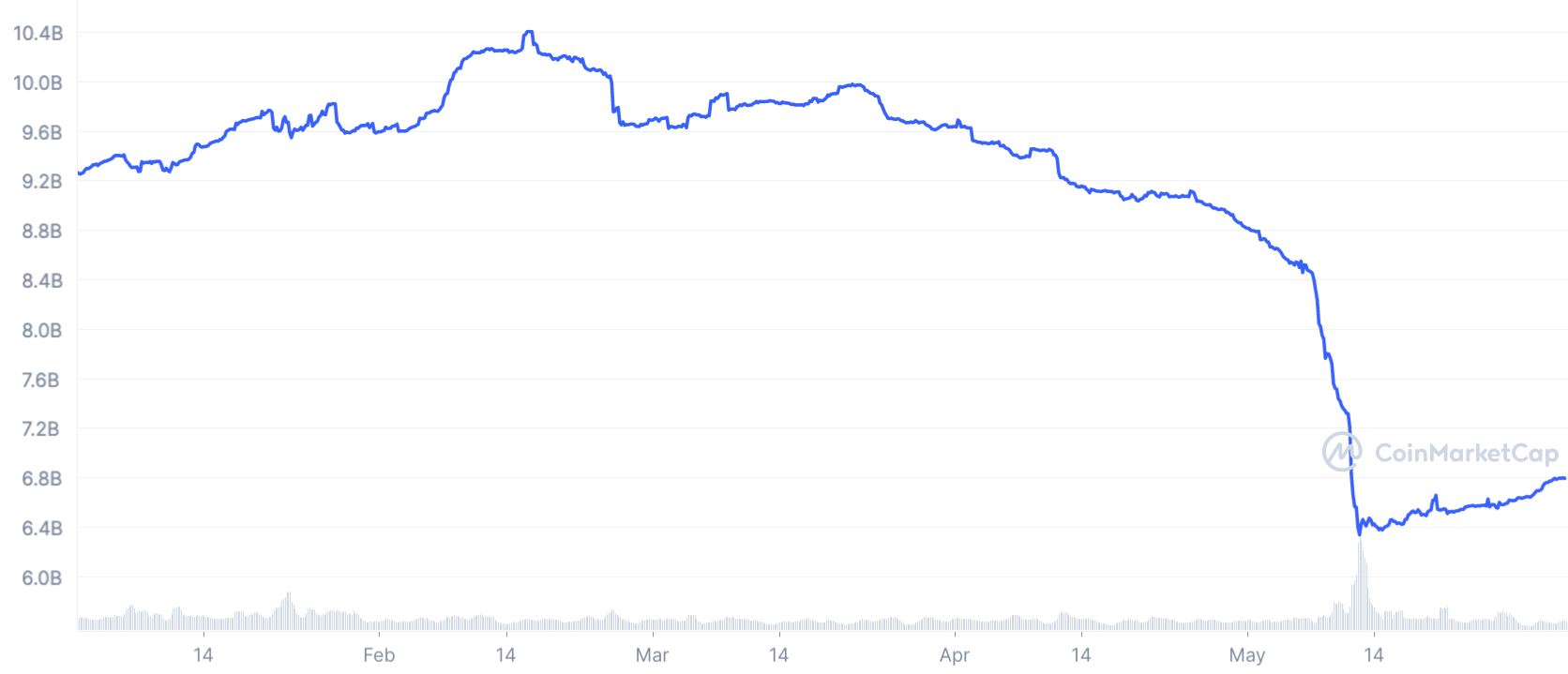 DAI, an algorithmic stablecoin native to Maker—a peer-to-contract lending platform, performed exceptionally well versus its rivals, never fluctuating too far from its promised dollar peg even though witnessing a 20% decline in its market capitalization since May 9.