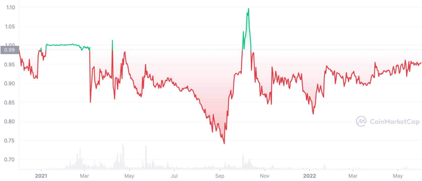 The algorithmic stablecoin, built on the Binance Smart Chain-based Venus Protocol — a lending platform, traded for $0.95 this June 2. However, like USDX, the token is notorious for trading below its intended dollar peg since launch.