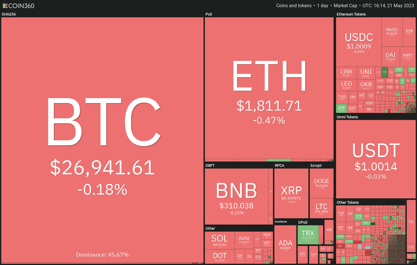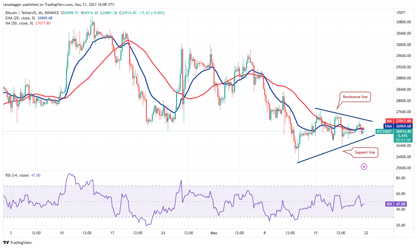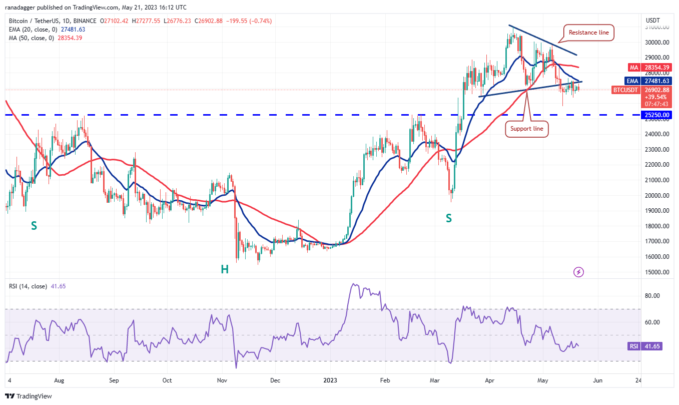 If the sellers sink the price below the immediate support at $26,361, the BTC/USDT pair may tumble to the crucial support zone between $25,800 and $25,250. Buyers are expected to protect this zone with all their might because if they fail, the pair could nosedive to $20,000.