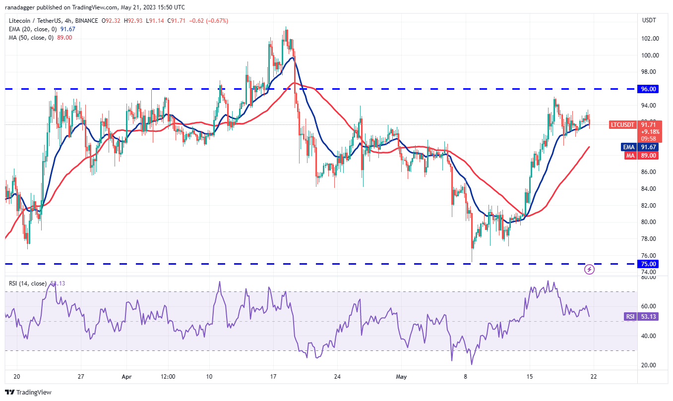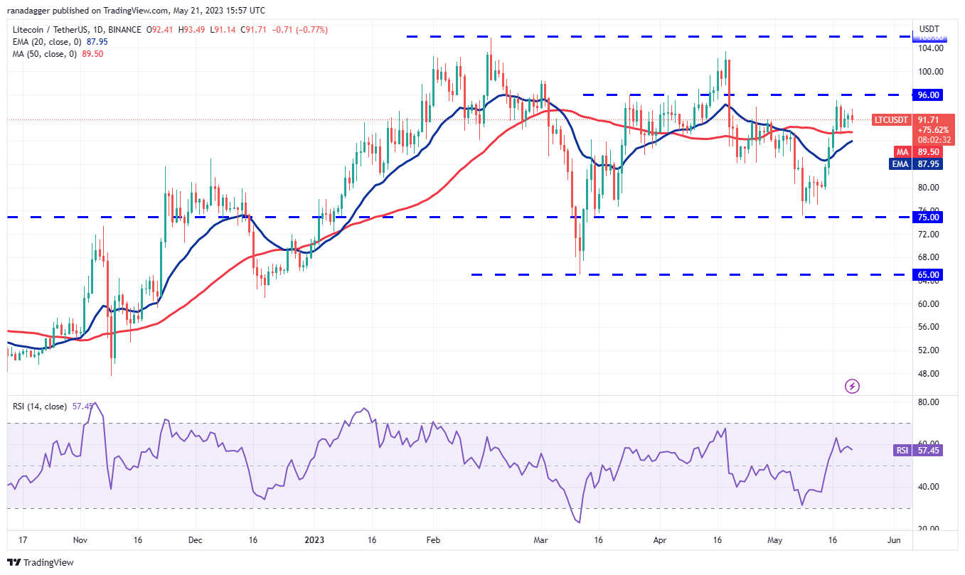Litecoin (LTC) has been trading in a tight range between the 50-day SMA ($89) and the overhead resistance of $96 for the past few days. This shows indecision between the bulls and the bears.