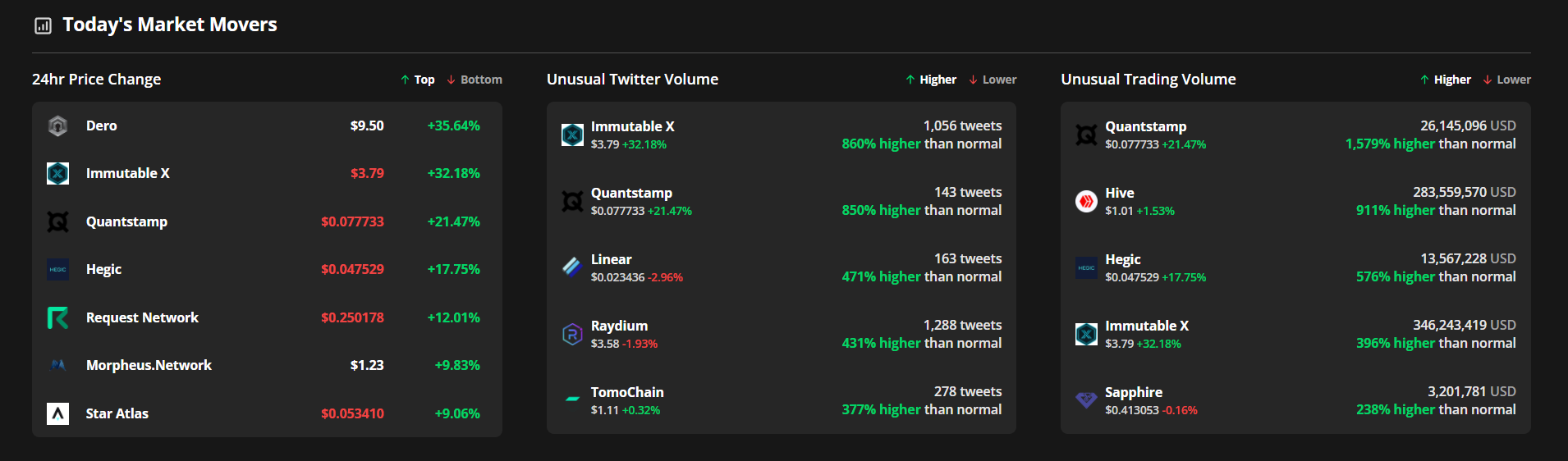 Yet, in some cases, it is surging trading volume that leads to price appreciation. In such a scenario, getting alerted to anomalous trading activity around a token can help crypto investors to spot the early signs of an impending rally. Regardless of whether the trading volume spikes precede or follow the price action, the assets that exhibit unusual behavior on this key metric merit a closer look.